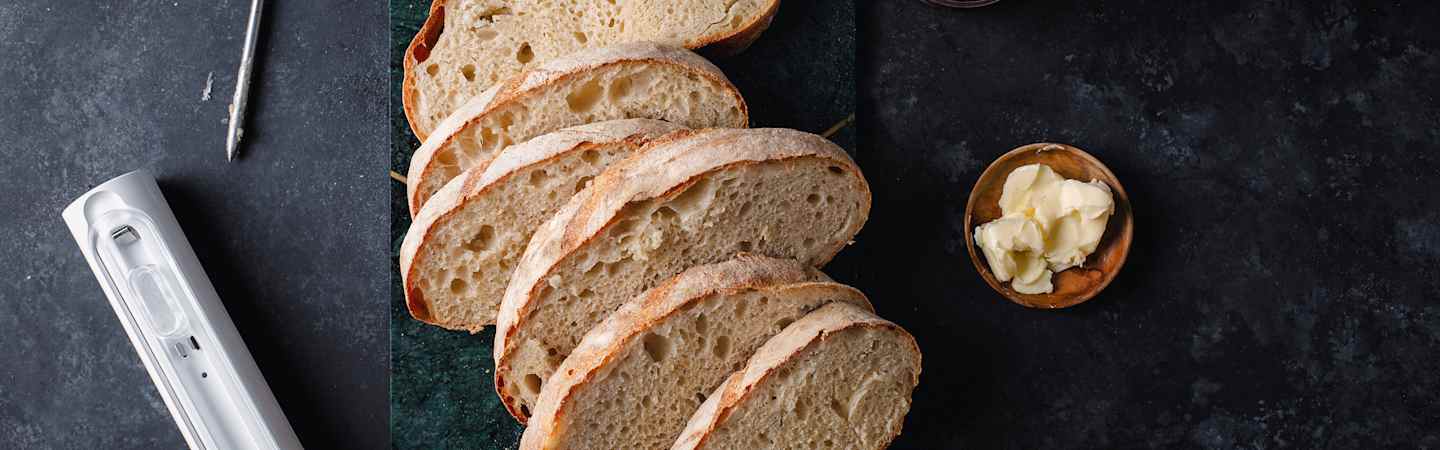 Brot: Knusprige Kruste - zarte Krume, so haben wir Brot am liebsten. Dafür ist es wichtig, den idealen Garpunkt zu erreichen, und dazu brauchst du nun nicht mehr auf die Unterseite des heißen Brotes zu klopfen, um zu prüfen, ob es hohl klingt.