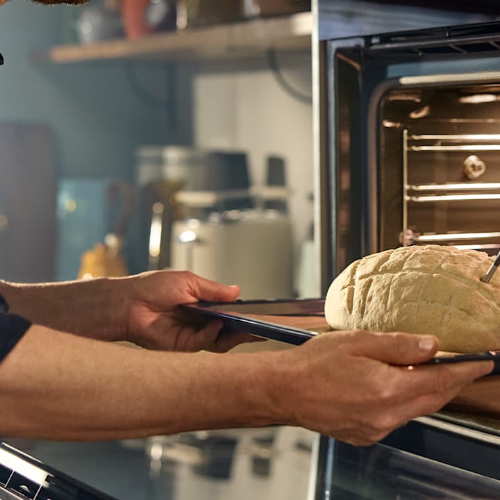 •Brot | Sobald die Kerntemperatur erreicht ist, erhältst du eine Nachricht, das Brot aus dem Ofen zu nehmen. Soll die Kruste dunkler sein, lass das Brot 3–5 Minuten länger im Ofen, bevor du es herausnimmst.