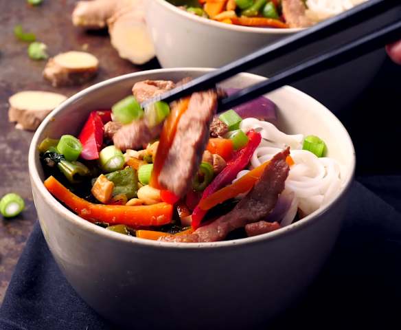Azjatycka zupa z kurczakiem i makaronem ryżowym