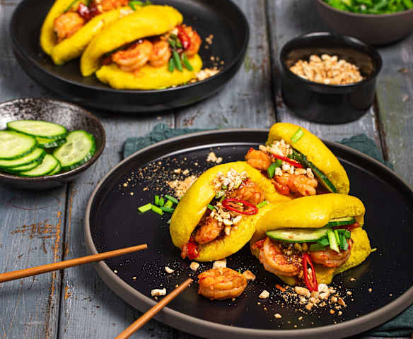 Kokos-Bao Buns mit Garnelen