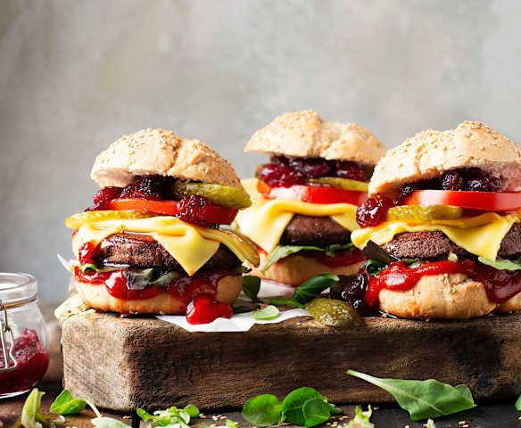 Bohnen-Burger mit Preiselbeer-Sauce (vegan)