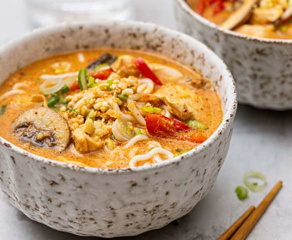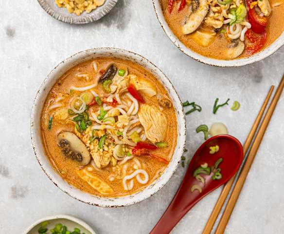 Rotes Curry-Ramen mit Poulet