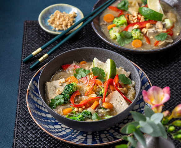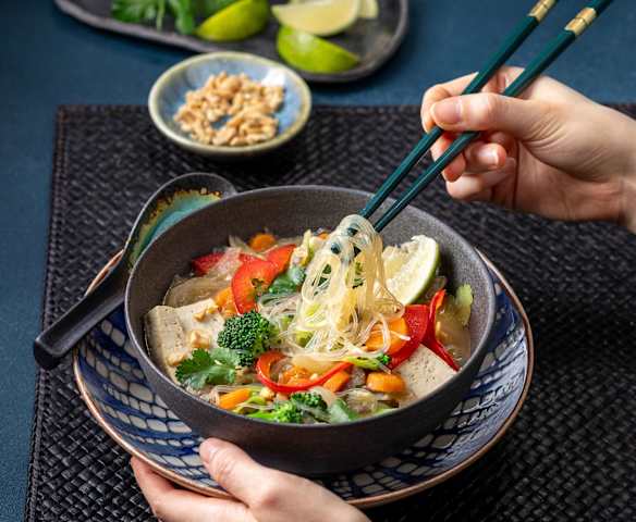 Misotopf mit Tofu und Glasnudeln