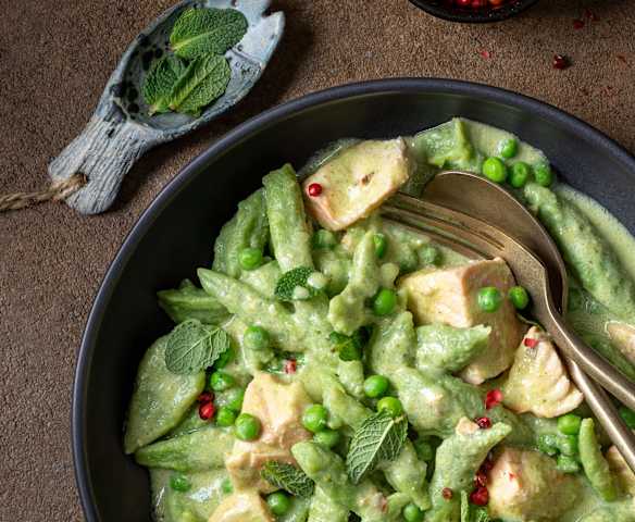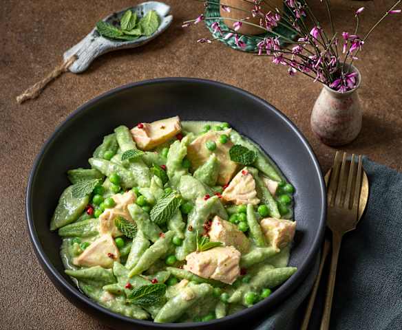 Erbsen-Scherennudeln in Zitronen-Lachs-Sauce