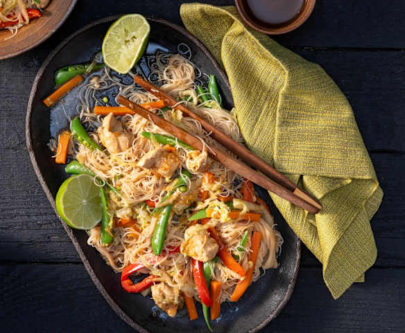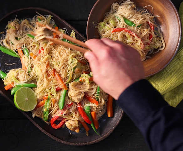 Pancit Bihon (Glasnudeln mit Gemüse und Huhn)